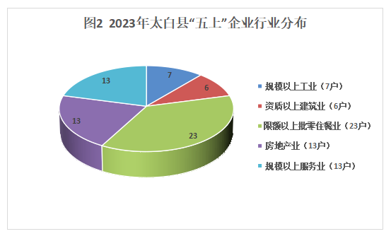 2023年末,“五上”企业总户数达62户。其中:规模以上工业企业7户,资质以上建筑业企业6户,限额以上批零住餐业企业23户,房地产业企业13户,规模以上服务业企业13户。