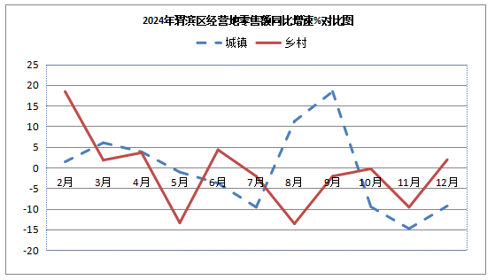 全年社会消费品零售总额同比增长3.5%。分经营地看,乡村市场销售快于城镇,全区城镇市场限额以上单位零售额同比下降2.8%,乡村市场零售额同比增长1.1%,乡村市场增速快于城镇市场3.9个百分点。