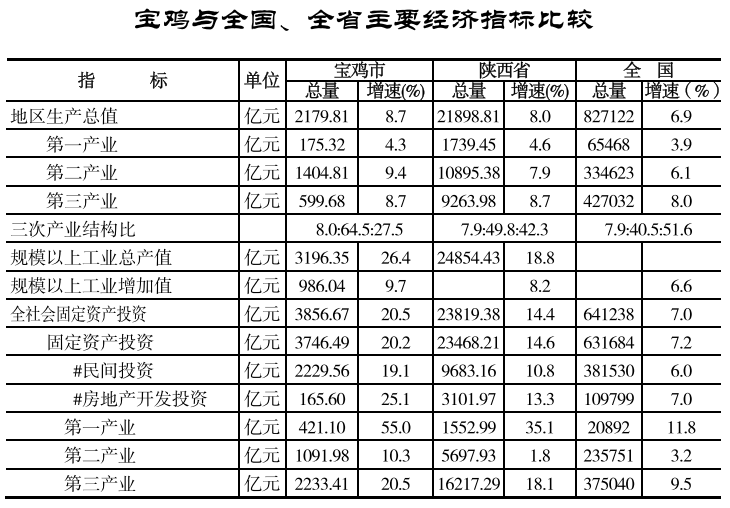 【2017年度】宝鸡与全国、全省主要经济指标比较