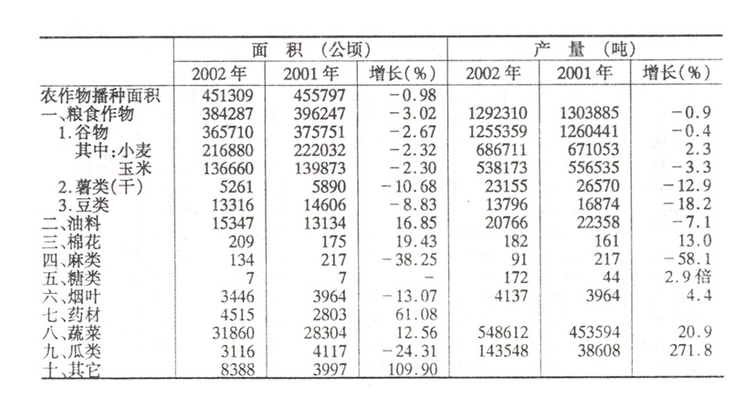 【2002年度】农作物播种面积和产量