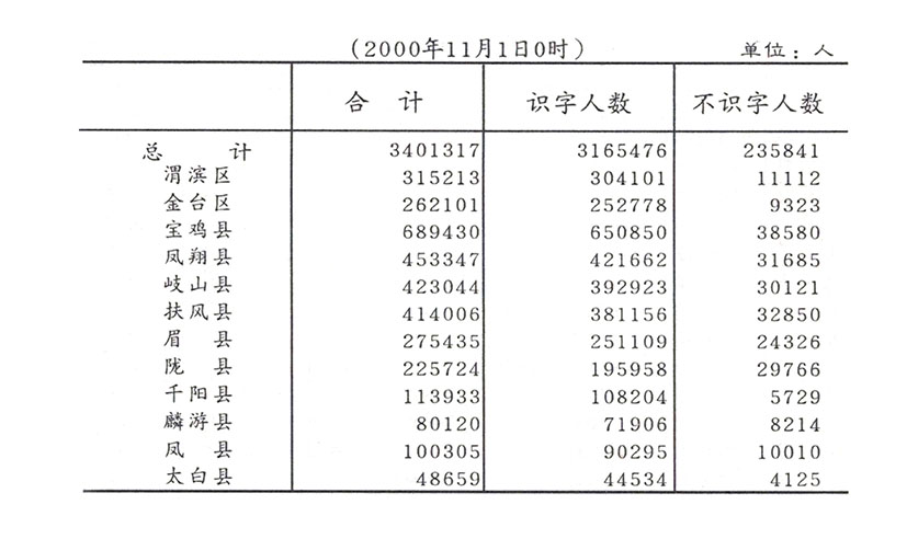 【2000年度】六周岁及以上常住人口识字状况
