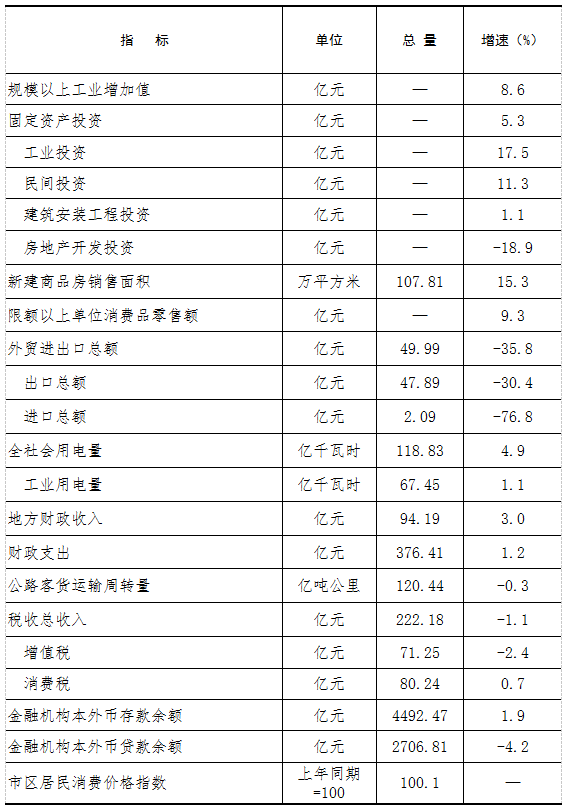 2025年1-10月全市主要经济指标完成情况