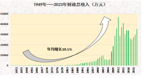 财政实力不断增强。中华人民共和国成立初期,全县财政十分困难,1949年全县财政总收入仅28万元。经过国民经济恢复和第一个五年计划的实施,县内经济枯竭状况得以改变,1960年全县财政总收入达到431万元,是1949年的15.4倍,年均增长28.2%。受三年自然灾害影响,后期财政总收入走向下滑,1967年下降到112万元,1978年达到340万元。1985年全县财政总收入首次超越1960年,达到619万元,较1949年增长21.1倍,年均增长9.0%。到1988年突破千万元大关,达到1052万元。1994年实施分税制财税管理体制,1995年全县财政总收入突破3000万元,达到3046万元。进入“十五”规划国民经济全面发展、综合实力显著增强、财政总收入大幅增加。2023年全县财政总收入达到35410万元,是1949年的1264.6倍,年均增长10.1%。